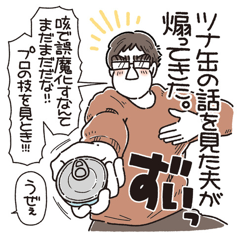 続☆ツナ缶 2025年12月14日 詰めが甘いのよ。せっかくドヤれるチャンスだったのにもったいなかったねぇ。笑ツナ缶を開けるときどうしても麦がくるもんだから編み出した必殺技「誤魔化し咳」。でもやっぱり麦には通用せずバレてしまうという話でした。 その話を見た夫がもんのすごいドヤ顔で「まだまだだ ... 続きを読む